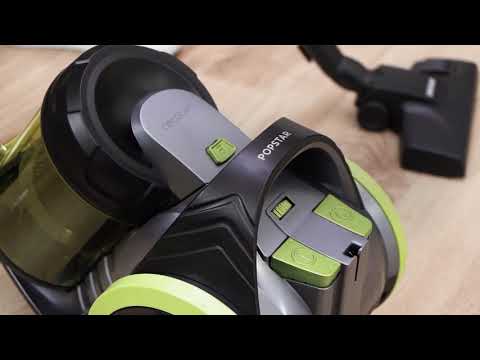 800 W kanistrinis dulkių siurblys. Multicikloninis ir be maišelio. Didžiausia talpyklos talpa iki 3,5 l, su didelio efektyvumo filtravimo sistema ir metaliniu teleskopiniu vamzdžiu.