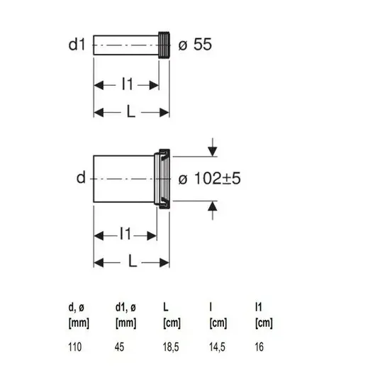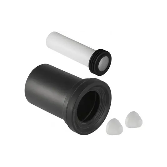 Pakabinamo tualeto prijungimui Geberit sukūrė jungiamųjų vamzdžių rinkinį, kurį sudaro nuleidimo vamzdis su polietileno įvore ir polipropileno išleidimo vamzdis. Komplekte taip pat yra įleidimo vamzdžio (45x185 mm) ir išleidimo vamzdžio (110x185 mm) galiniai dangteliai. Dėl naudojamų medžiagų ir nepriekaištingos gamybos „Geberit“ gaminiai pasižymi puikiomis savybėmis, tiek eksploataciniu patikimumu, tiek atsparumu aukštai temperatūrai ir cheminėms medžiagoms. Užsisakykite jungiamųjų vamzdžių rinkinį montavimui patalpose iš „Sanitino“. „Geberit“ jungiamųjų vamzdžių rinkinys pakabinamiems tualetams. Medžiaga: PE/PP. Įleidimo vamzdis: 45x185 mm. Išleidimo vamzdis: 110x185 mm. Nuleidimo vamzdis su PE-HD įvore. Jungiamasis vamzdis su PP įvore. 2 dangteliai. Spalva: matinis chromas.