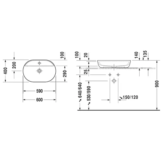 Jei naudojate sifoną, įsitikinkite, kad aukštis nuo viršutinio keraminio krašto iki sifono centro yra teisingas, kaip nurodyta duomenų lape.