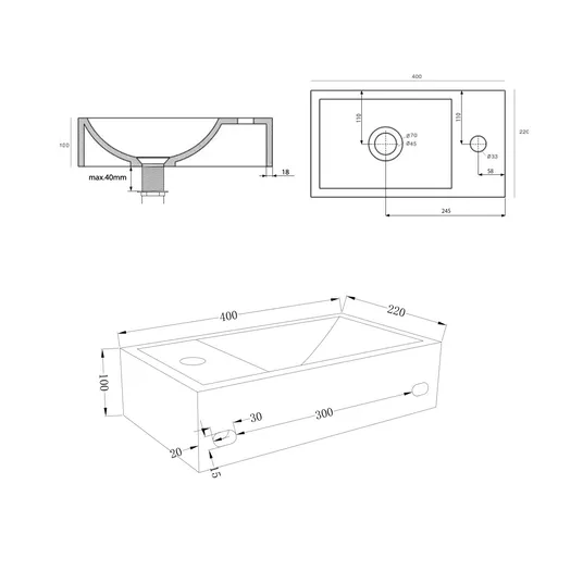 Sieninis „Crest“ praustuvas, pagamintas iš betono, be perpildymo angos