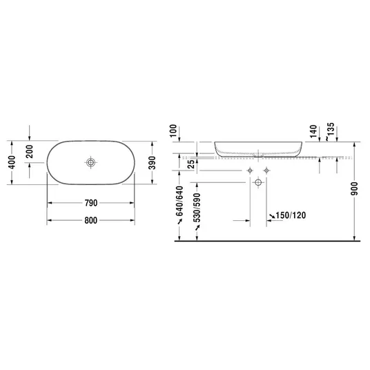 Jei naudojate sifoną, įsitikinkite, kad aukštis nuo viršutinio keraminio krašto iki sifono centro yra teisingas, kaip nurodyta duomenų lape.