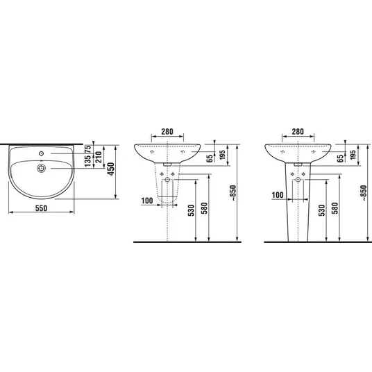 Praustuvas su perpildymo anga, 55 cm, montuojamas prie sienos