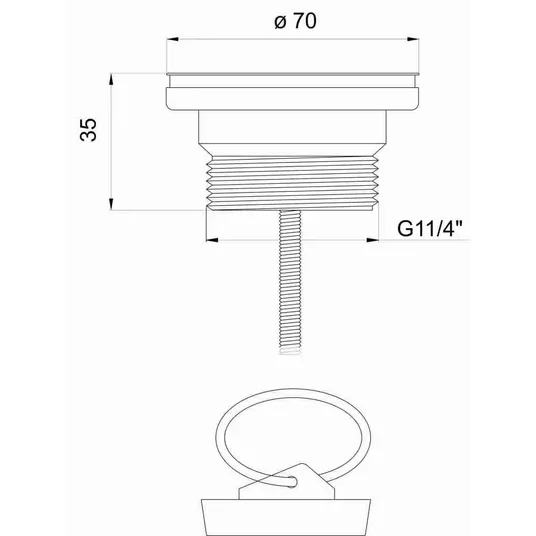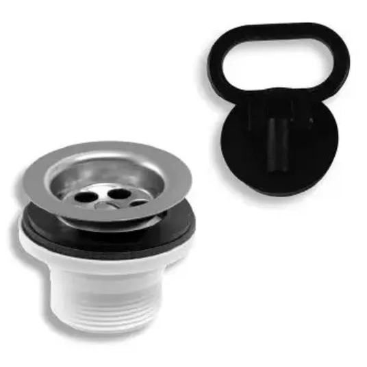 5/4 colio, sifono skersmuo 63 mm. Kriauklės kamštis su guminiu kamščiu ir nerūdijančio plieno dubeniu.