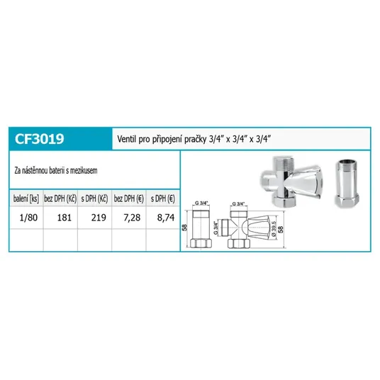 Vožtuvas skalbimo mašinai prijungti už sieninio maišytuvo su tarpikliu.