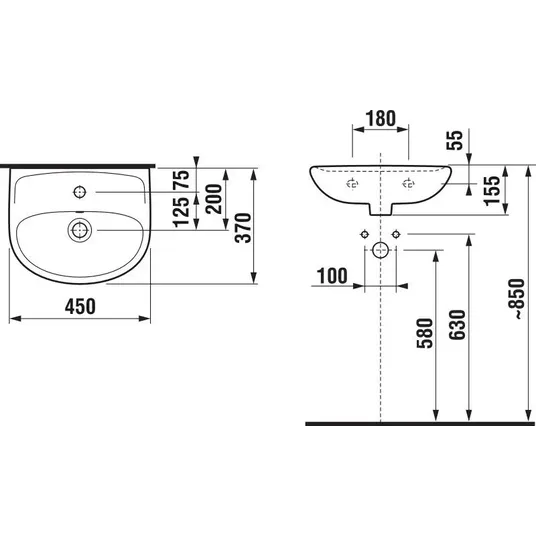 Pakabinamas praustuvas su skyle maišytuvui
