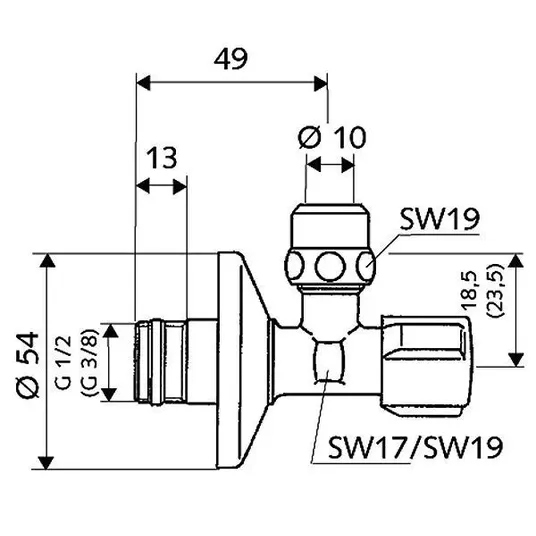 Kampinis valdymo vožtuvas DIN su rankena COMFORT