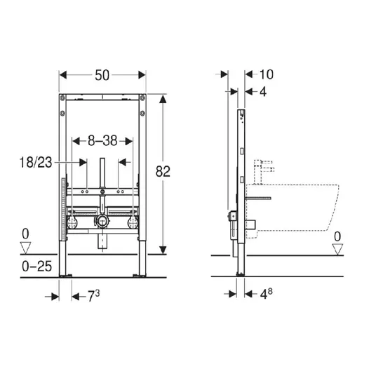 - montavimui iš dalies aukštose Geberit Duofix sistemos sienose
