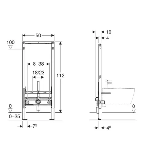 - Sieninio bidė tvirtinimo atstumas: 18 arba 23 cm