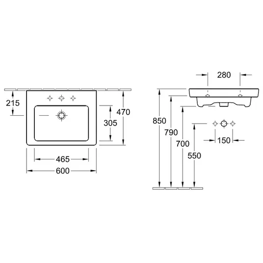 Tvirtinamas prie sienos. Matmenys: 600 x 470 mm. Su perpildymo anga. Perforuota centrinė skylė 3 skylių maišytuvams. Tinka SUBWAY 2.0 baldų serijai. Maišytuvas į komplektą neįeina ir turi būti užsakomas atskirai. Šis gaminys gali būti pristatytas be originalios pakuotės. Tai skirta apsaugoti gaminį nuo pažeidimų transportavimo metu.
