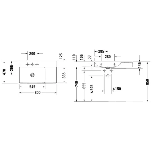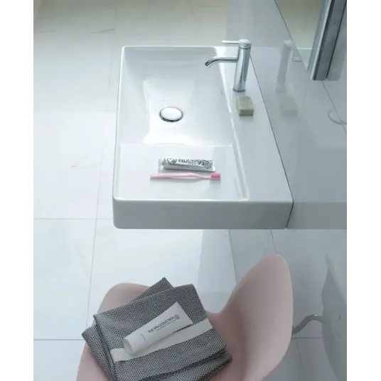 Asimetriškas prie sienos montuojamas praustuvas be perpildymo angos