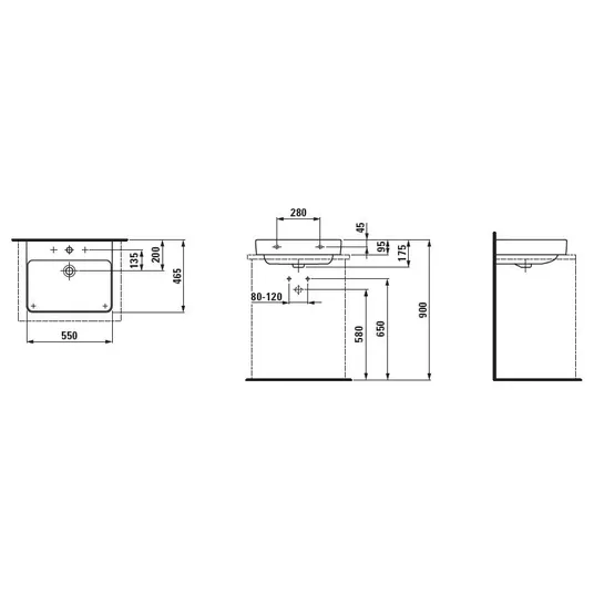 Įgilinta apačia, tinka montuoti ant stalviršio.