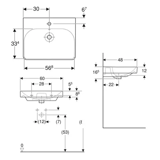 Praustuvas su skyle maišytuvui
