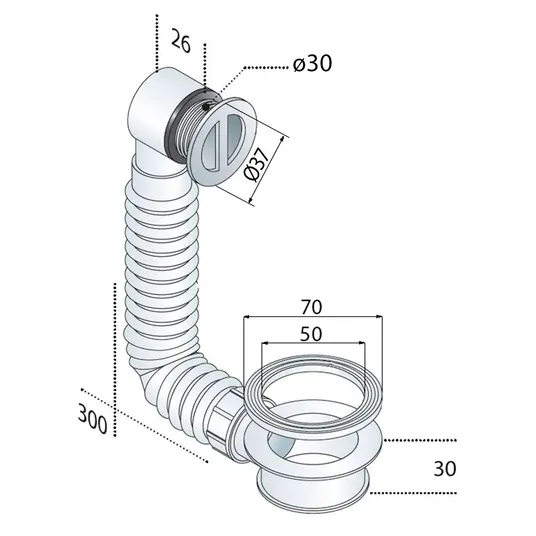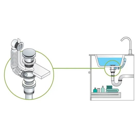 Praustuvo perpildymo anga su tarpikliu