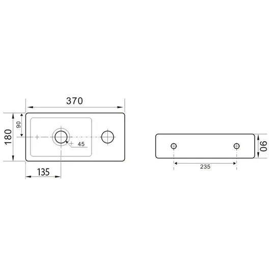Praustuvas be perpildymo angos, montuojamas prie sienos