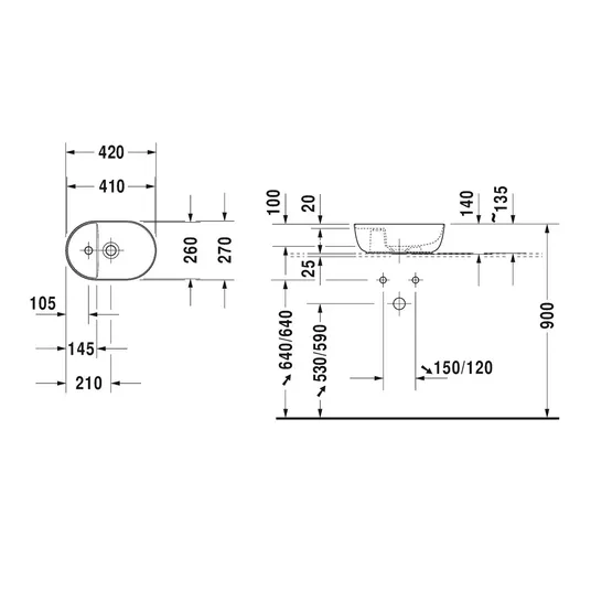 Jei naudojate sifoną, atkreipkite dėmesį į aukštį nuo viršutinio keramikos krašto iki sifono centro – pagal duomenų lapą.