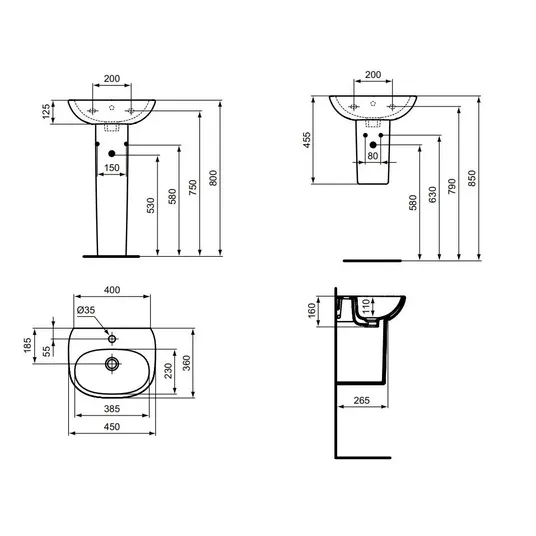 Keramikinis praustuvas su perpildymo anga