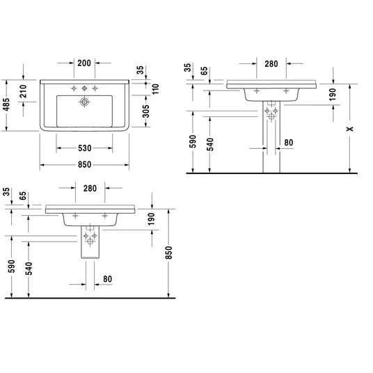 Prie sienos tvirtinamas praustuvas su perpildymo anga