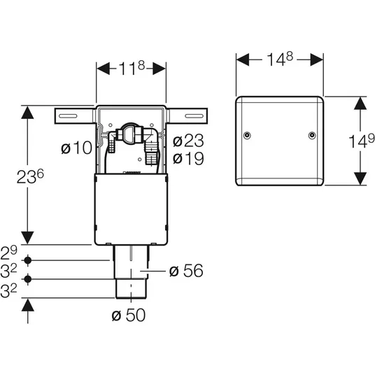 Įleidžiamas sifonas baldams, su 2 jungtimis