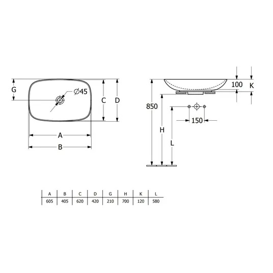 Praustuvas, montuojamas ant stalviršio arba vonios spintelės