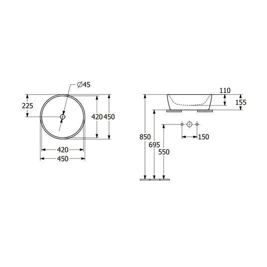 Apvalus praustuvas ant stalviršio