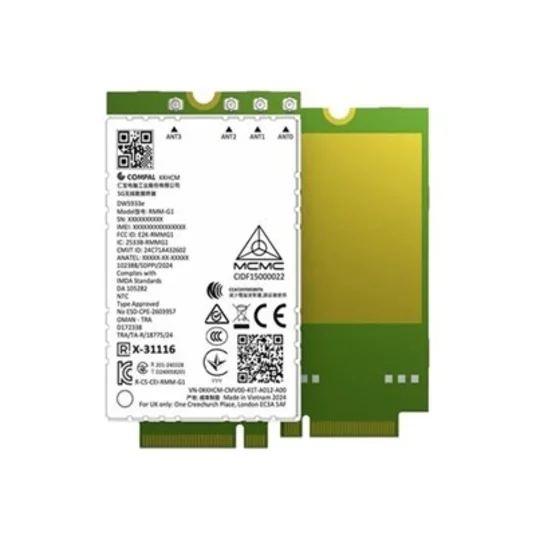 "Dell Wireless DW5933E" yra universalus vidinis belaidis korinio ryšio modemas, skirtas patikimam ryšiui įvairiose aplinkose užtikrinti. Šis modemas palaiko 5G ir daugybę korinio ryšio protokolų, įskaitant LTE, UMTS ir WCDMA, todėl užtikrina spartų duomenų perdavimą ir patikimą veikimą. GPS, GLONASS, "Beidou", "Galileo" ir QZSS integracija leidžia tiksliai sekti buvimo vietą, todėl šis modemas tinka įvairioms programoms - nuo mobiliųjų kompiuterių iki daiktų interneto įrenginių. Sukurtas atlaikyti ekstremalias temperatūras, DW5933E efektyviai veikia esant žemai -40 °C ir aukštai 85 °C temperatūrai. Modemas turi M.2 formos kortelę, PCIe 3.0 magistralę ir belaidžio ryšio technologiją, todėl jį lengviau integruoti į įvairias sistemas. Be to, šis modemas, turintis tokias funkcijas kaip WWAN palaikymas, WAN pažadinimas ir eSIM palaikymas, yra sukurtas pažangioms tinklo galimybėms, užtikrinančioms ir našumą, ir patikimumą.